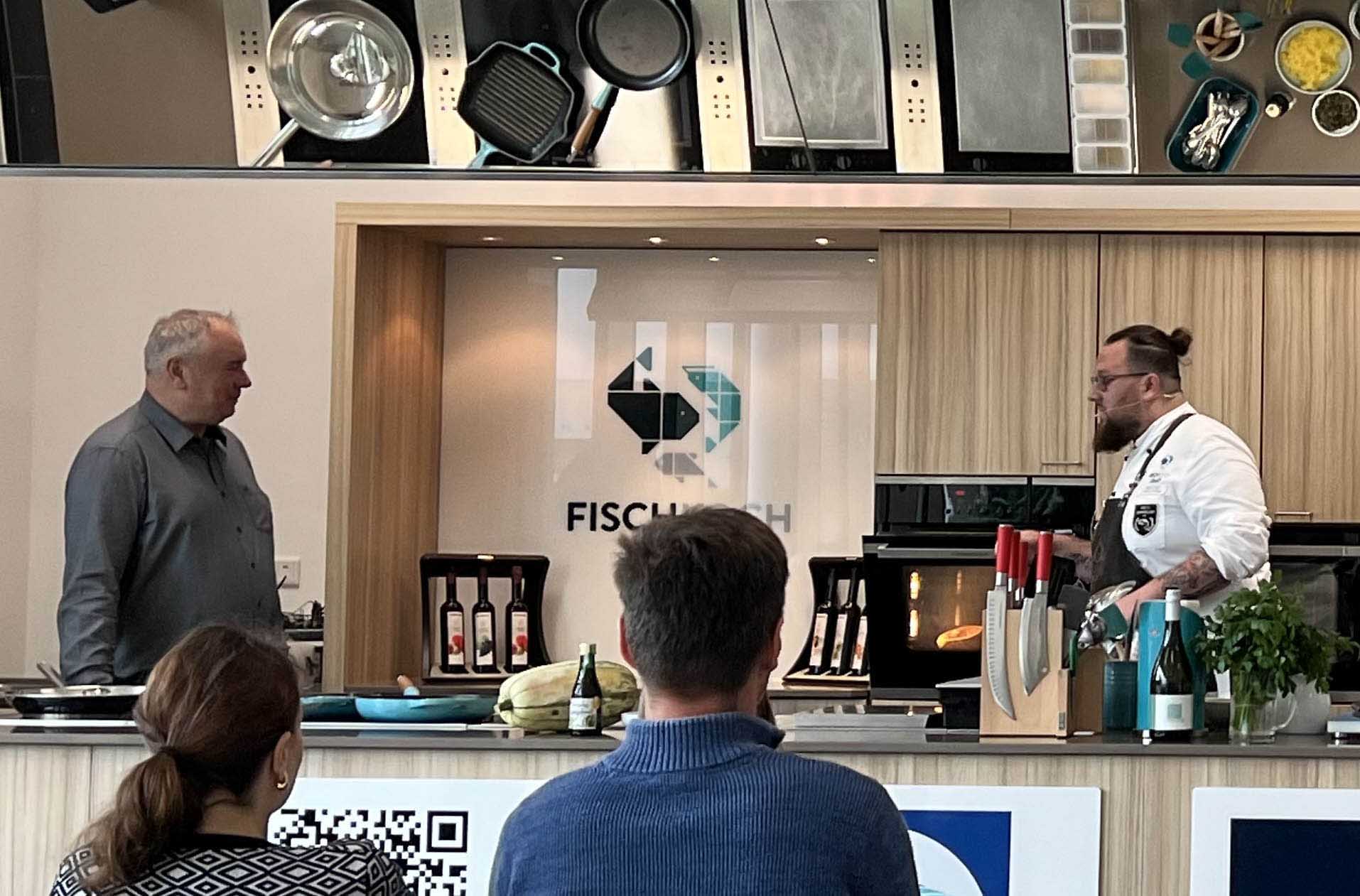 Ein Highlight des Tages waren die Klimakochshows im Fischkochstudio. Fischsommelier Florian Zerbst zeigte dem Publikum, wie man Fisch lecker und dabei auch ressourcenschonend und energieeffizient zubereiten kann. Begleitet wurde die Show von Ralf Finck, Energieexperte des CCF-Gründungsmitglieds FRoSTA. Er berichtete während der Shows über die Arbeit und Erfolge der Klimakooperation. Vom ersten Treffen vor zwei Jahren bis zu den aktuellen Projekten.