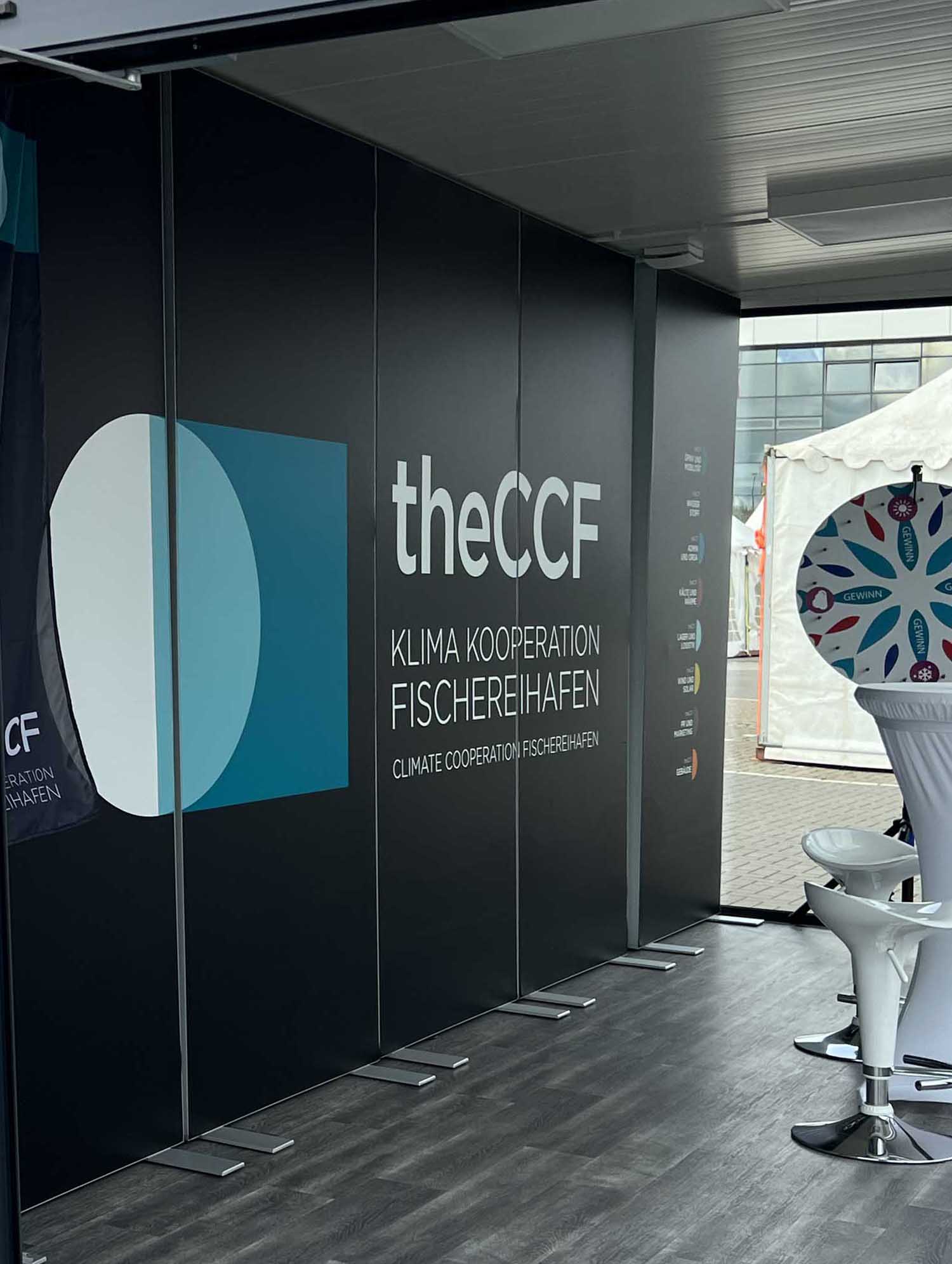 Der CCF-Container auf dem Platz beim Oberfeuer bot Besuchenden die Möglichkeit, sich über Arbeit der Klimakooperation zu informieren. Ein Team stand für Fragen zur Verfügung. Für den zusätzlichen Spaßfaktor sorgte das Glücksrad, bei dem es attraktive Preise zu gewinnen gab – von exklusiven CCF-Bio-Baumwoll-Hoodies bis hin zu Gutscheinen für eine Klima-Kochshow im Fischkochstudio und Freikarten für das immersive Filmerlebnis Fischbahnhof360°.